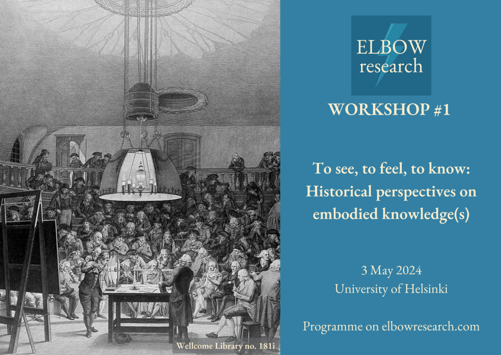 Our ELBOW-project is launching a series of three workshops to map out the interactions between bodies, experiences, and knowledge construction. This will be the first of these workshops, and it seeks to map out the two-way interactions between embodiment and knowledge construction. The keynote speaker of the event is Professor Karen Harvey, University of Birmingham.